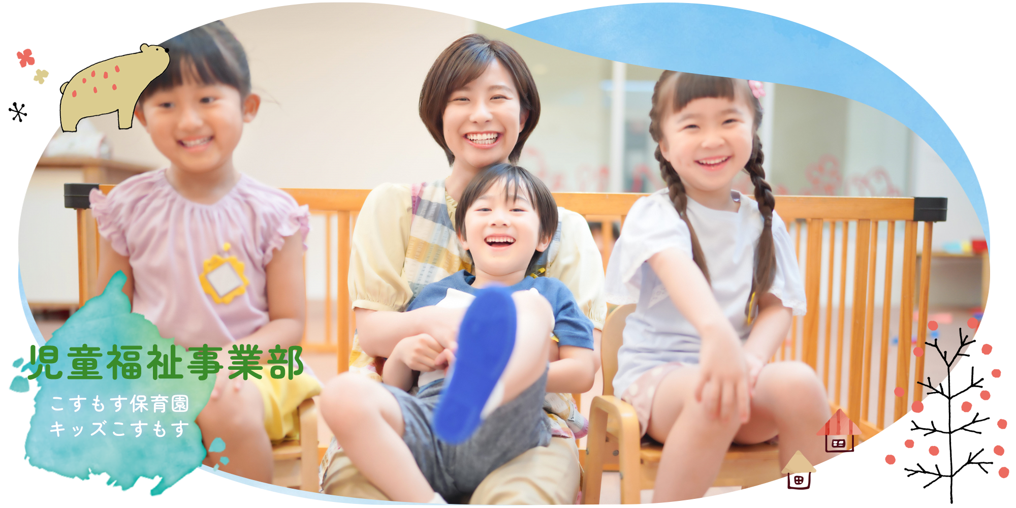 保育事業では、0~2歳児の子どもたちが、楽しく健やかな成長ができるよう、あらゆる観点からの充実した保育園生活を提供しています。